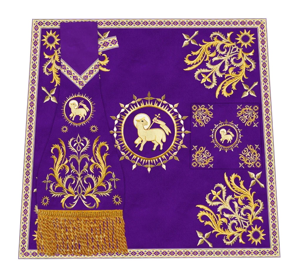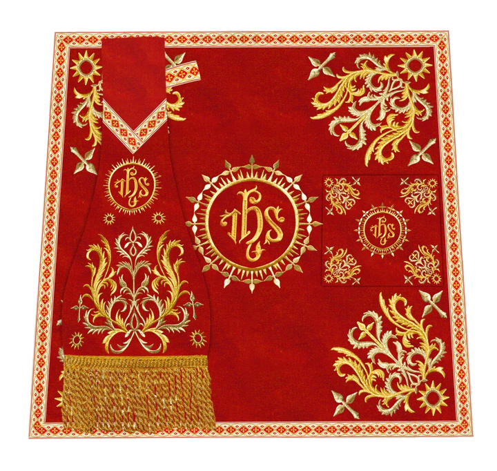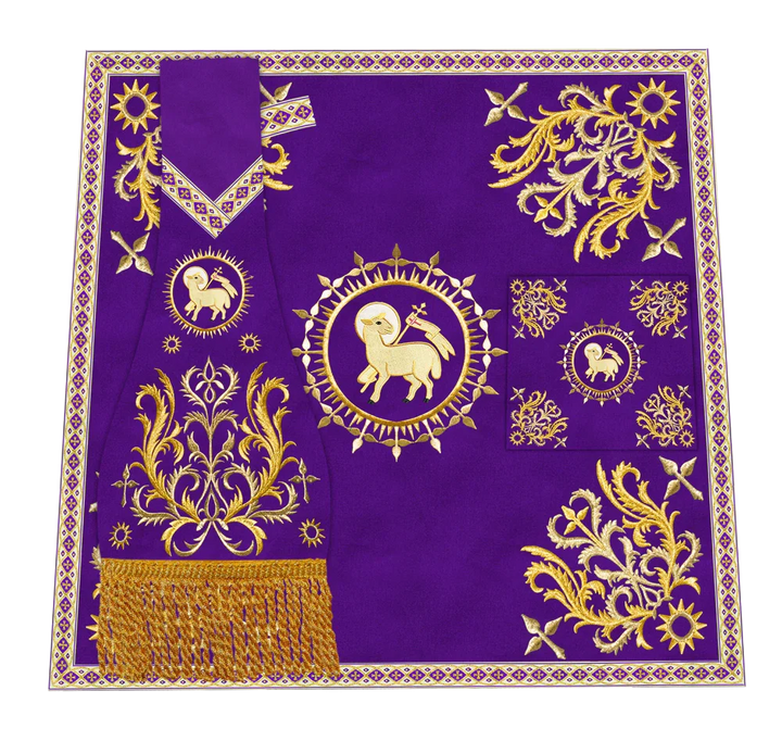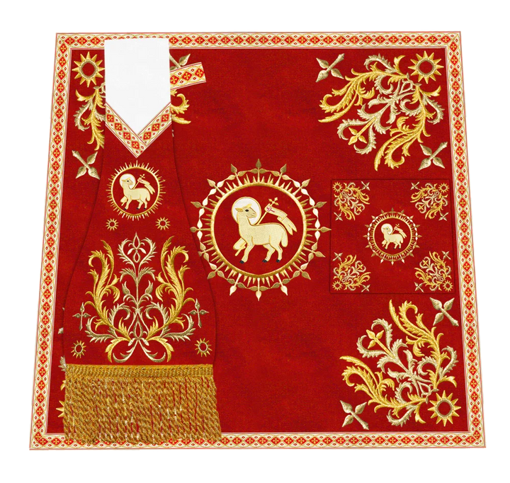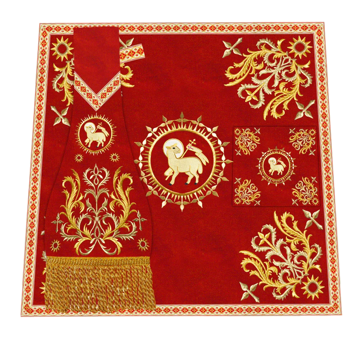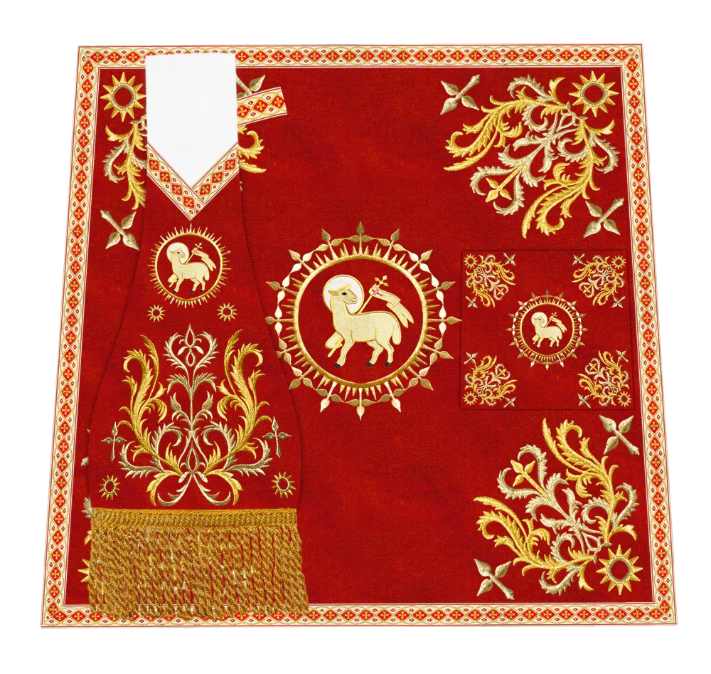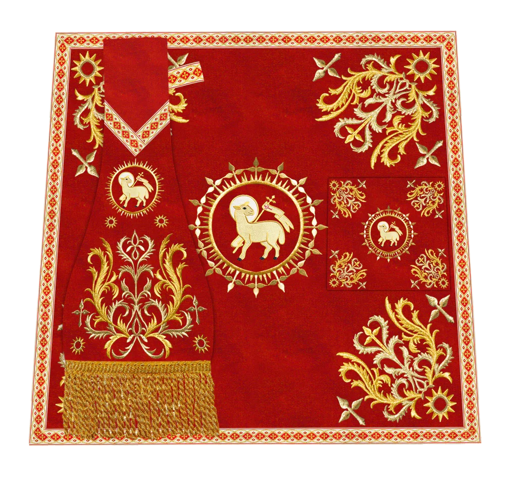 Elevate every celebration of the Eucharist with the Embroidered Mass Set. It is meticulously crafted for clergy who value reverence, tradition, and exceptional craftsmanship. Made from premium Taffeta fabric, each piece offers a luxurious texture and subtle sheen. The set provides enduring quality and enhances the solemnity of every liturgical ceremony.