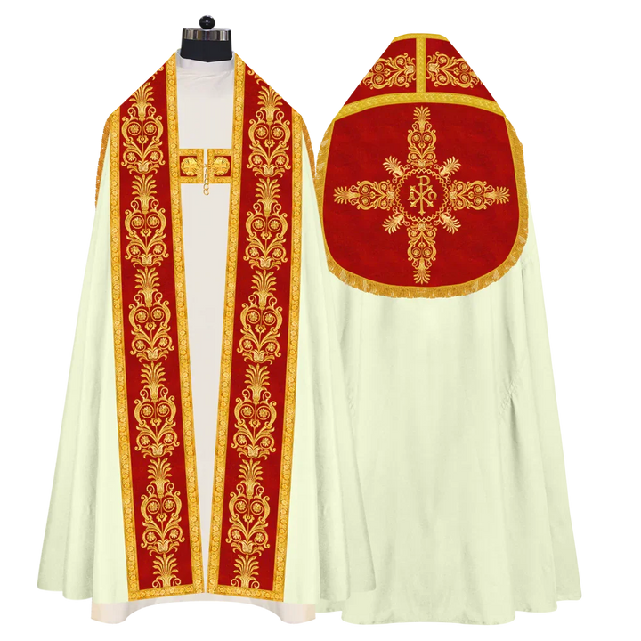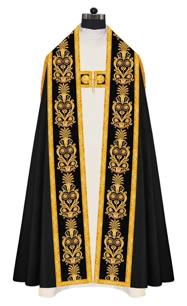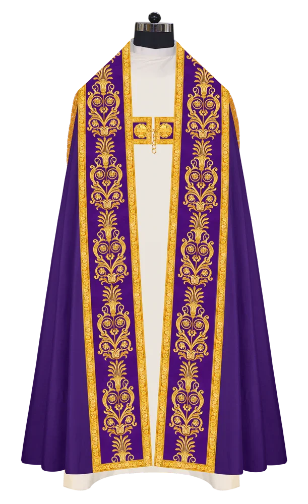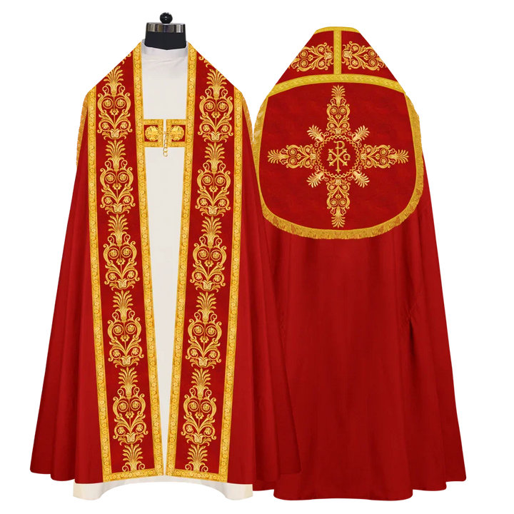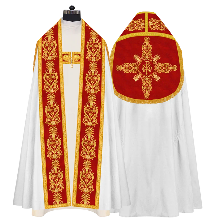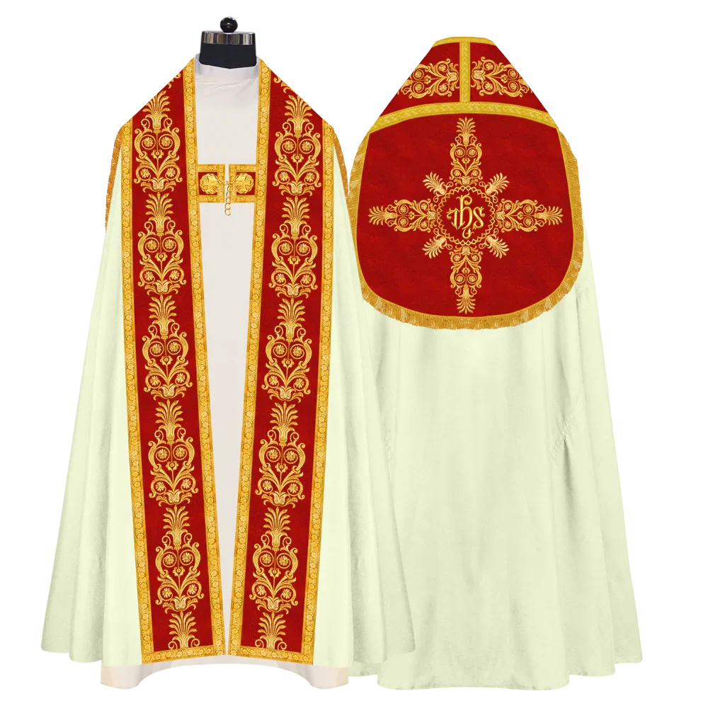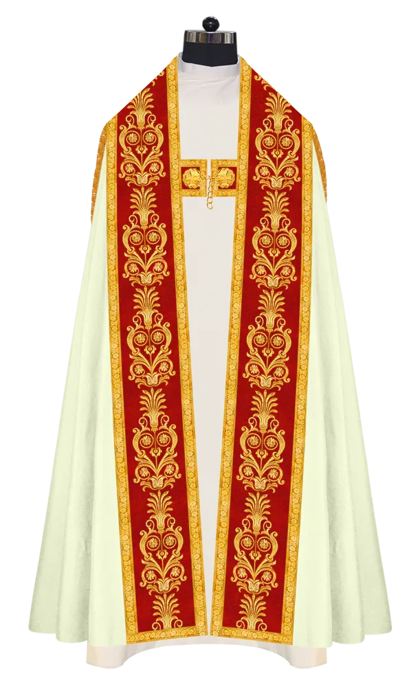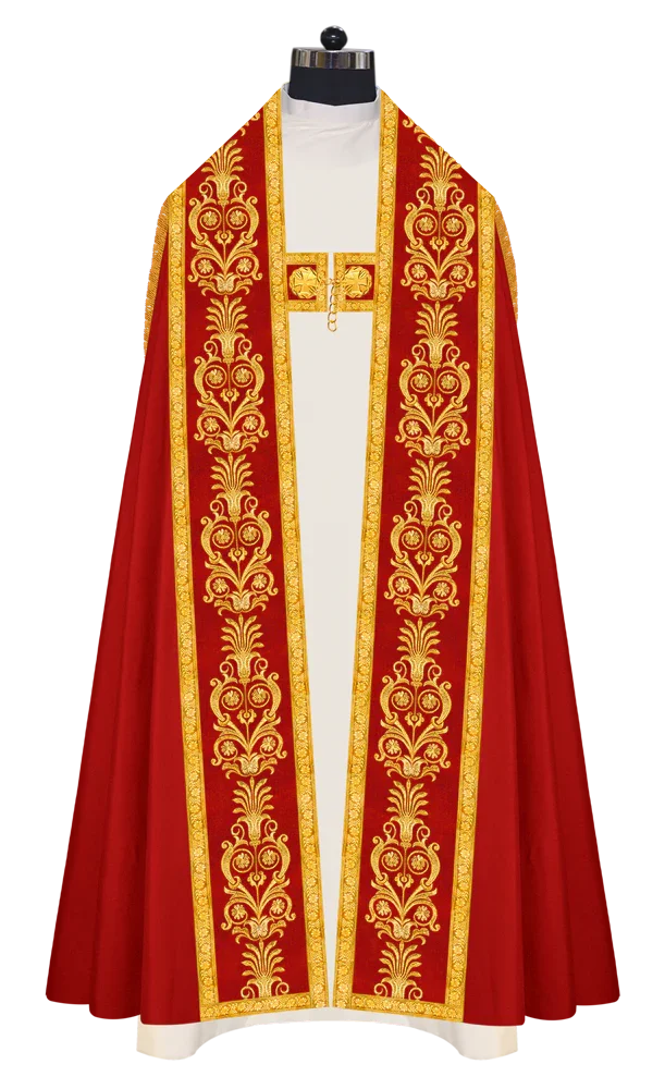 Elevate your sacred ceremonies with the Embroidered Roman Cope with Adorned Motif, a distinguished vestment designed for clergy who value tradition, artistry, and ceremonial elegance.