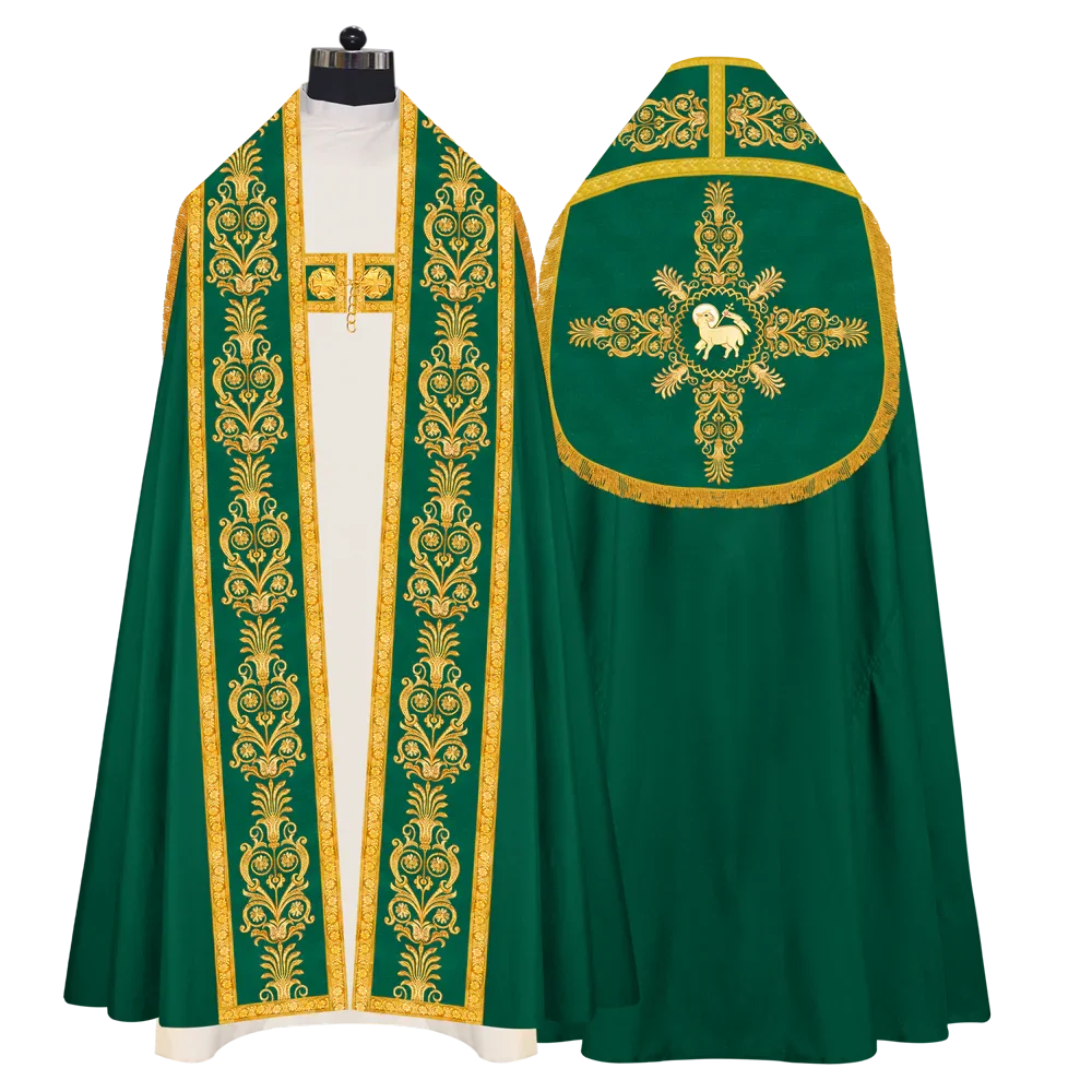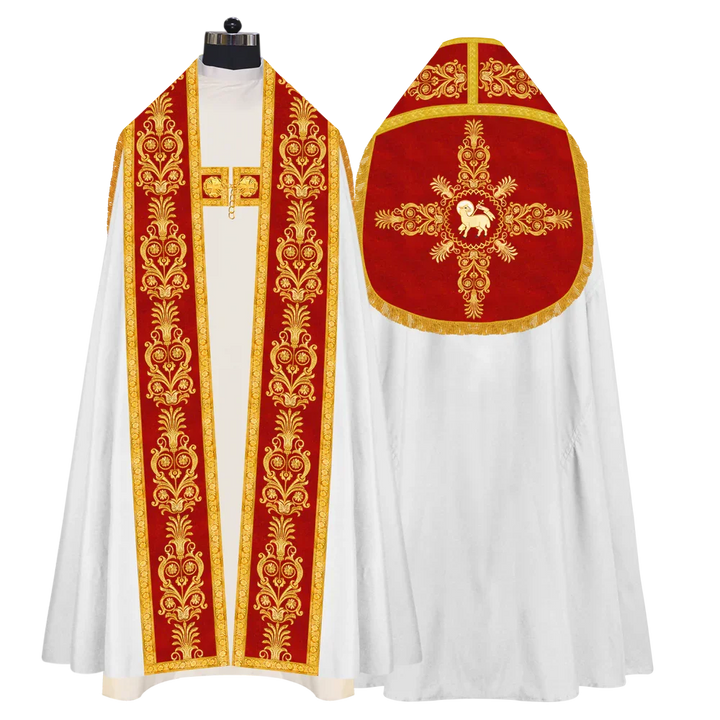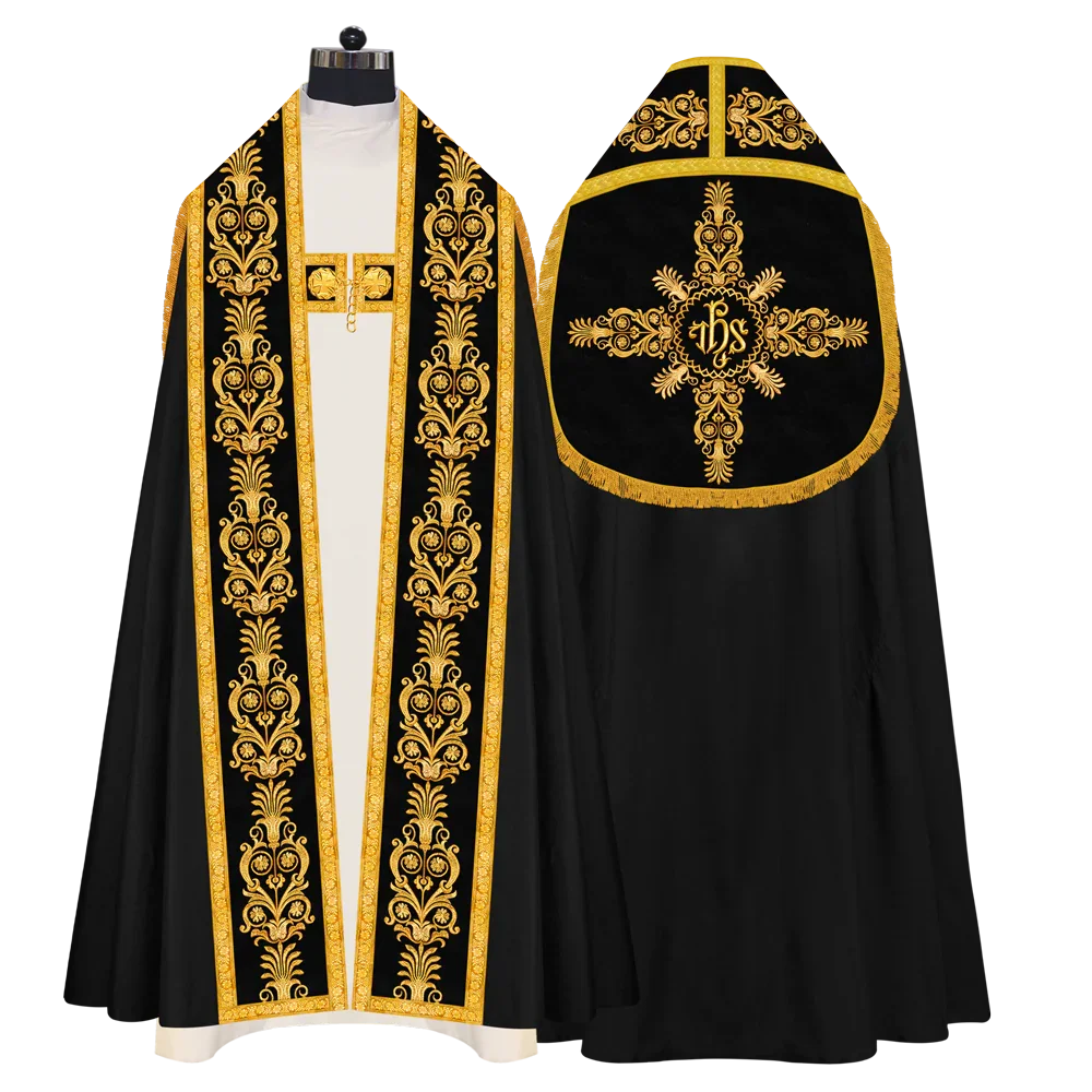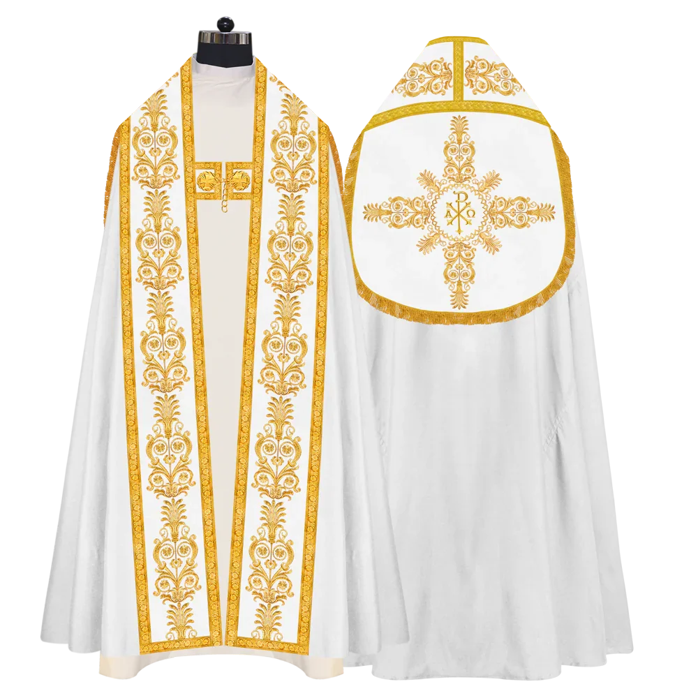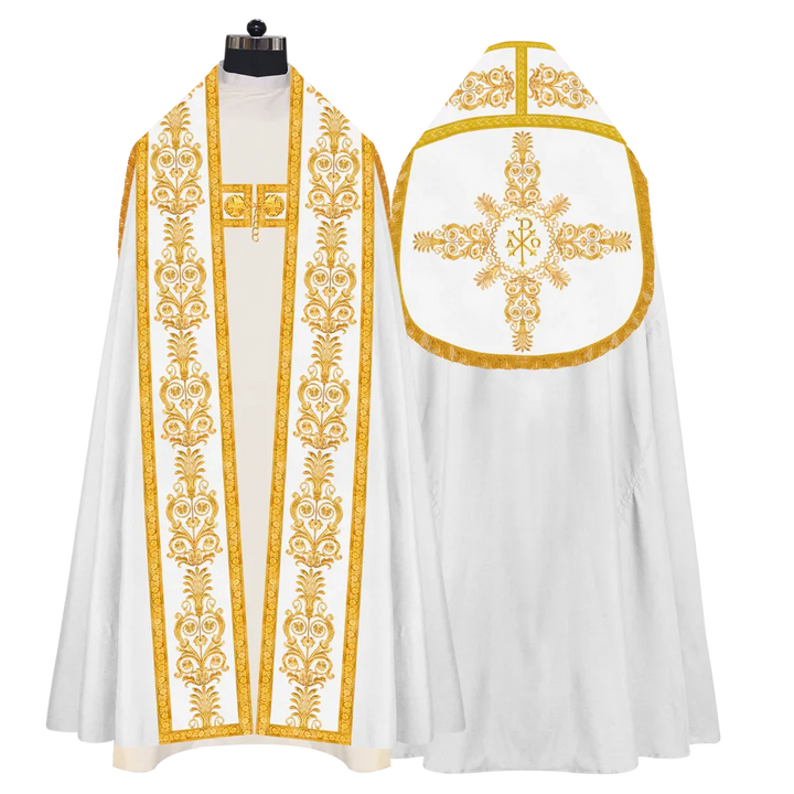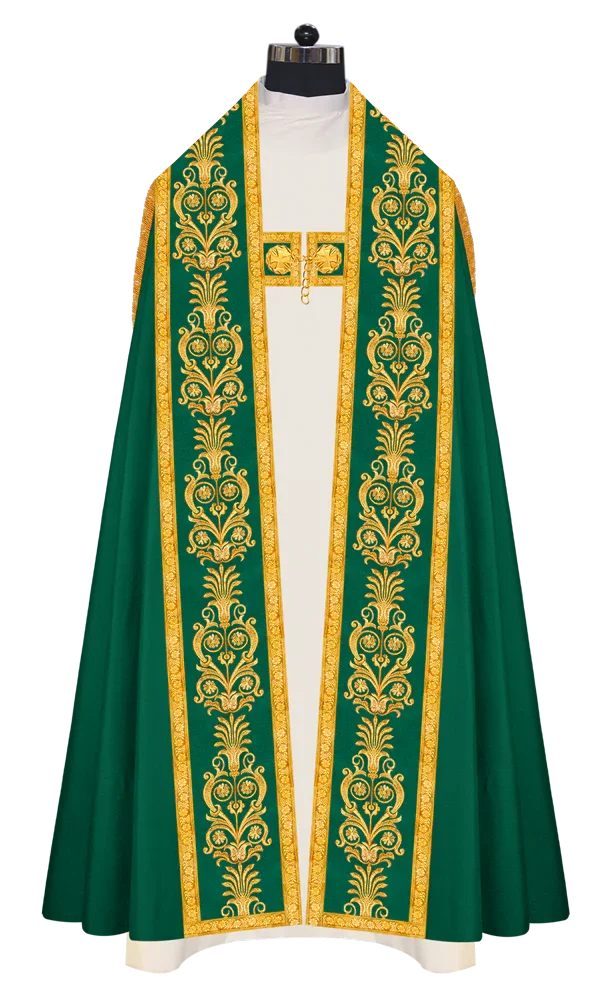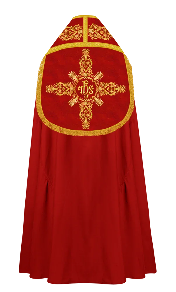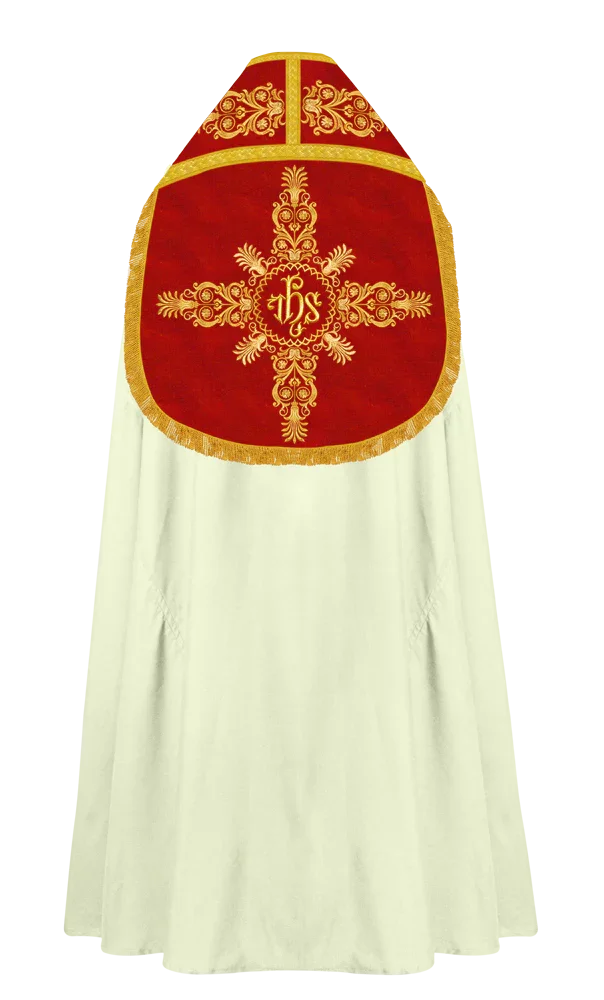 Elevate your sacred ceremonies with the Embroidered Roman Cope with Adorned Motif, a distinguished vestment designed for clergy who value tradition, artistry, and ceremonial elegance.