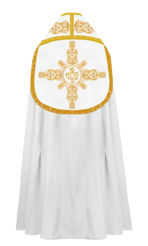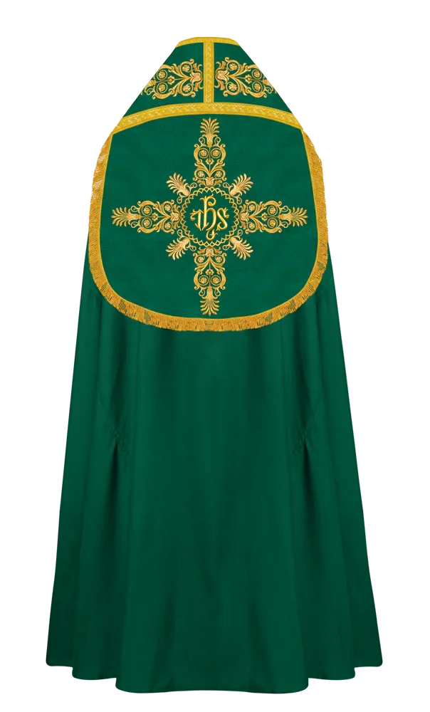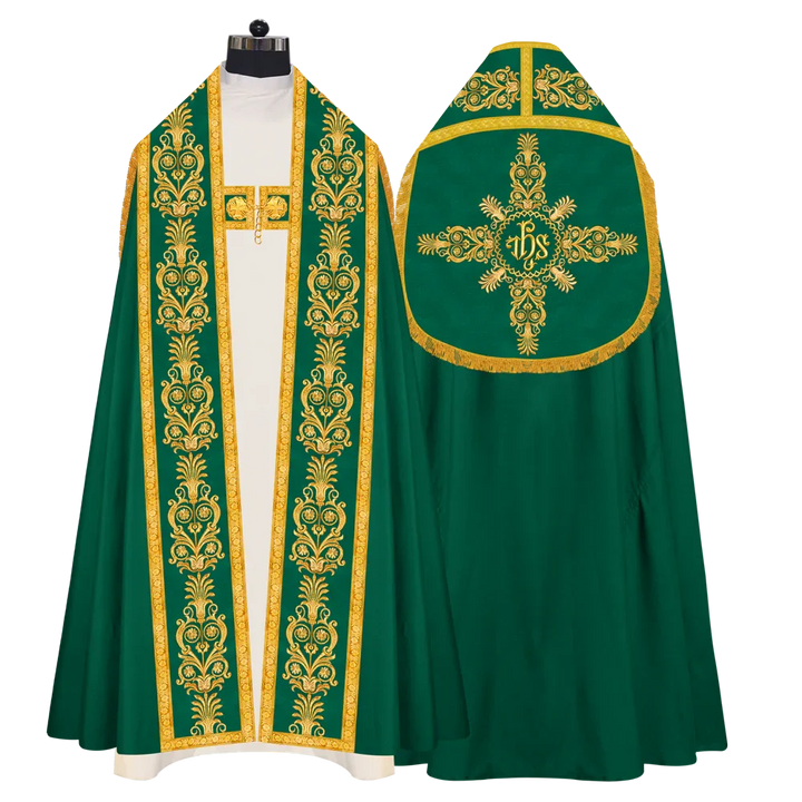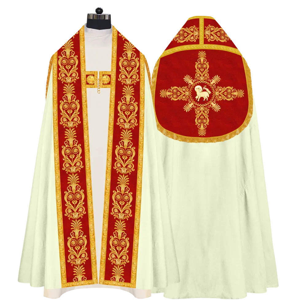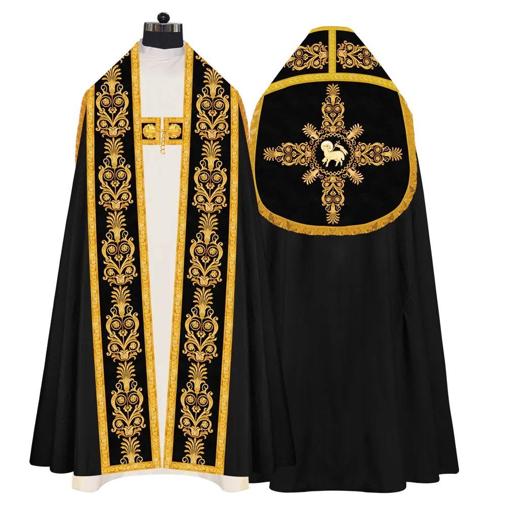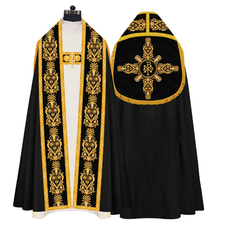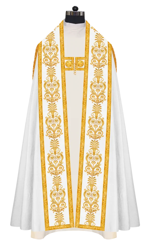 Elevate your sacred ceremonies with the Embroidered Roman Cope with Adorned Motif, a distinguished vestment designed for clergy who value tradition, artistry, and ceremonial elegance.